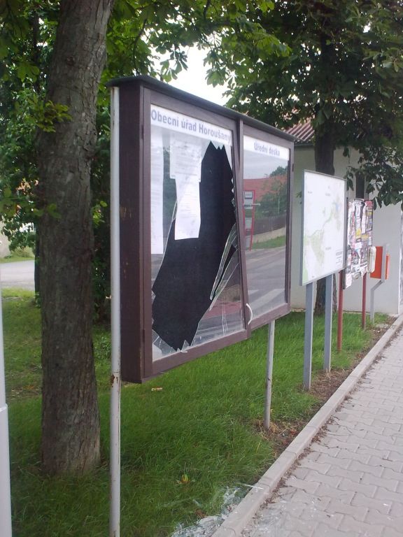 uřední deska obce v Horoušánkách po zásahu hlupáka